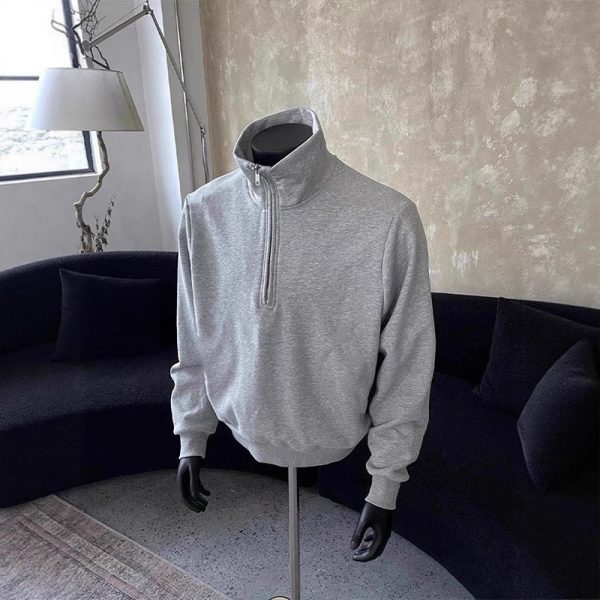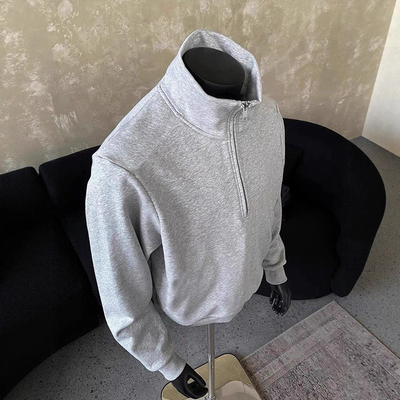 American Half Zipper Stand Collar Sweatshirt for Men, Autumn/Spring Trendy Brand Heavyweight Loose Casual Versatile Niche Design Top
