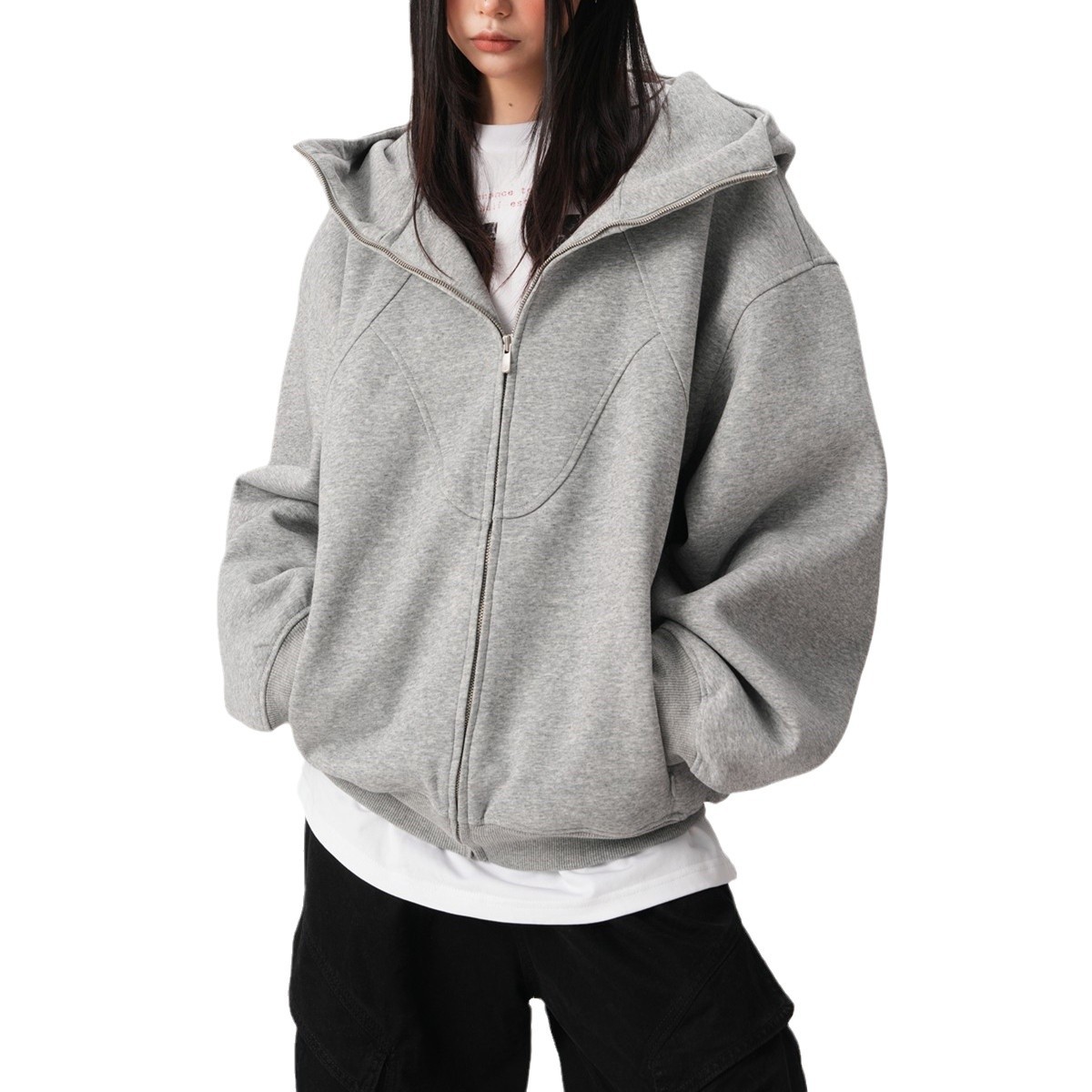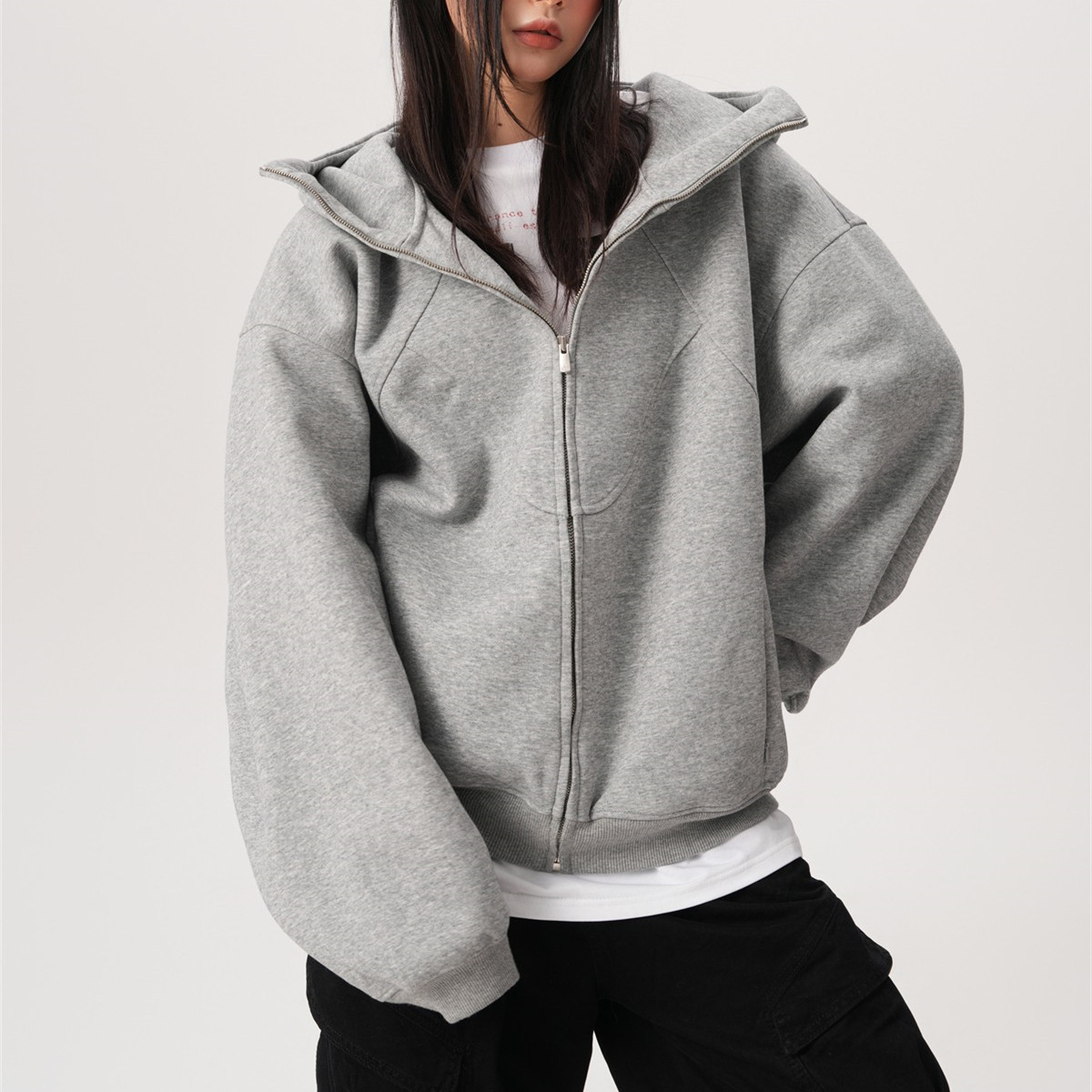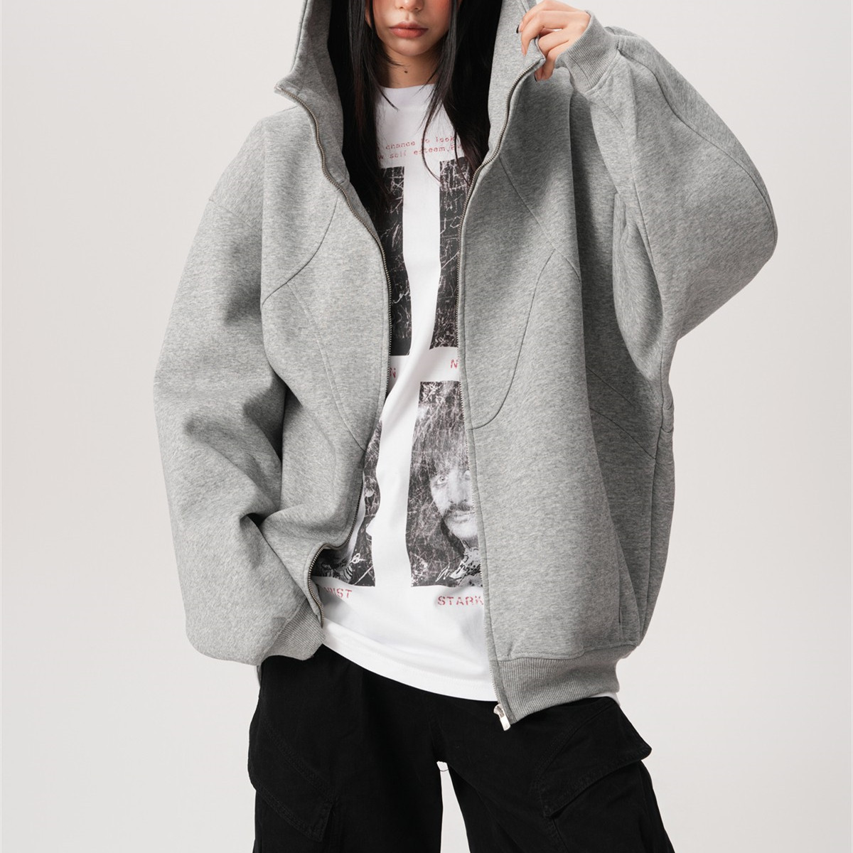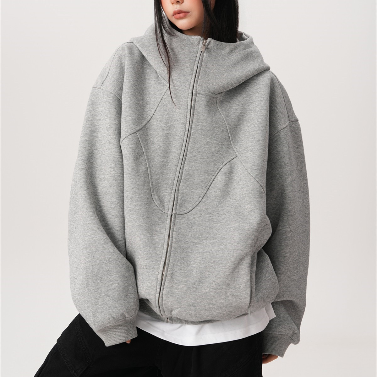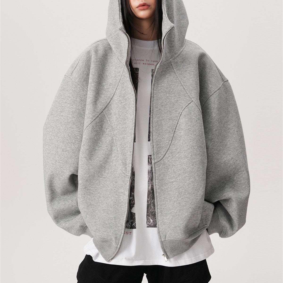 American Heavyweight Deconstructed Hooded Cardigan Sweatshirt for Women and Men, Autumn/Winter New Thickened Spliced Design, Loose Casual Jacket