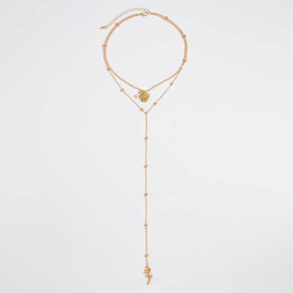 European and American Cross-border Jewelry Ins Retro Rose Pendant Necklace Personalized Layered Flower Necklace