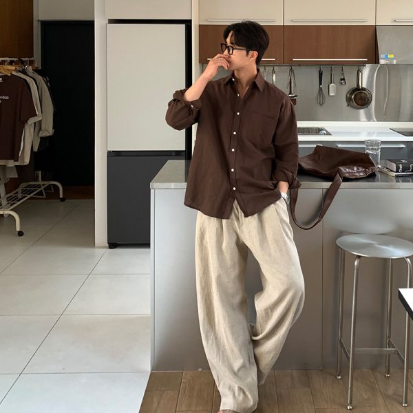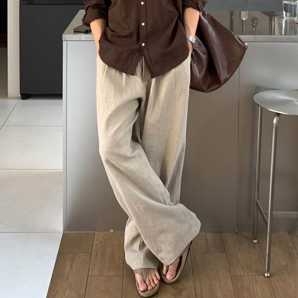 Lightweight Linen Casual Pants Men’s Loose Fit Wide Leg Trousers