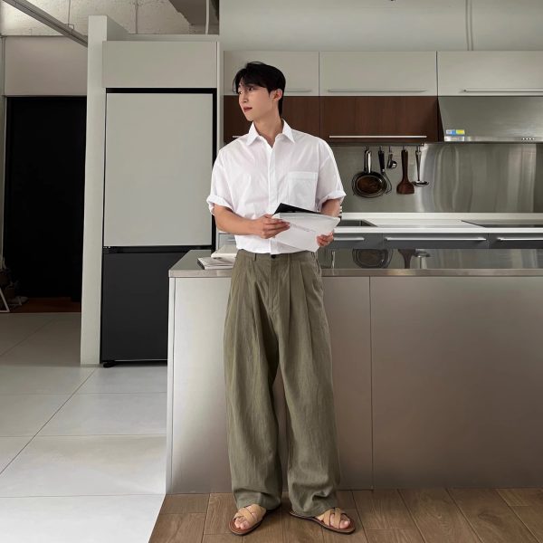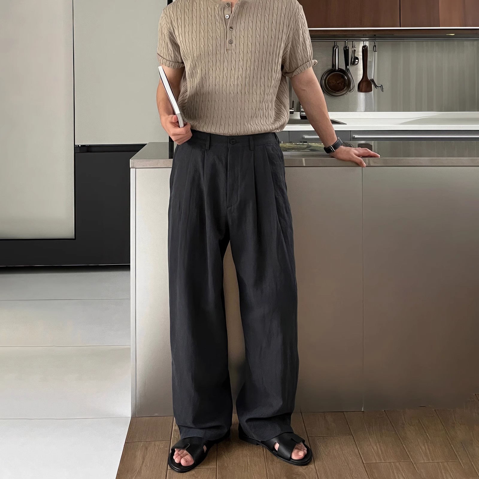 Men’s Linen Casual Pants Loose Fit Straight Leg Trousers