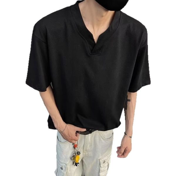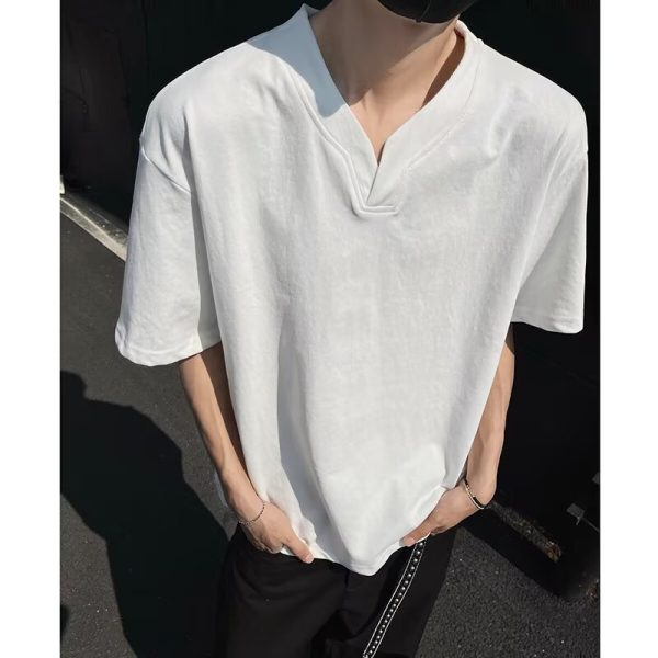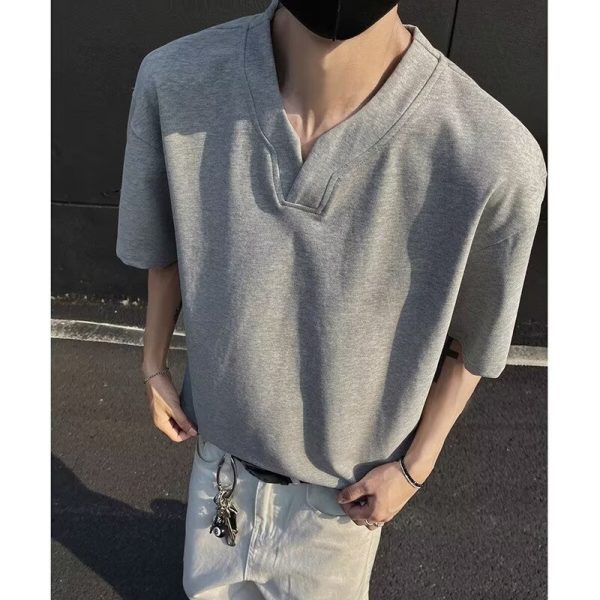 Men’s Solid Color Clean Fit Henley V-Neck Short Sleeve T-Shirt