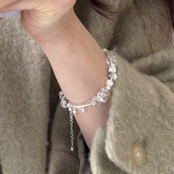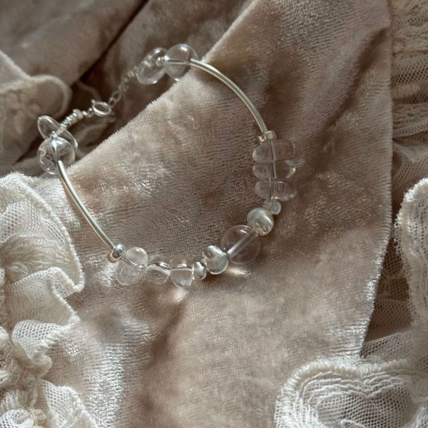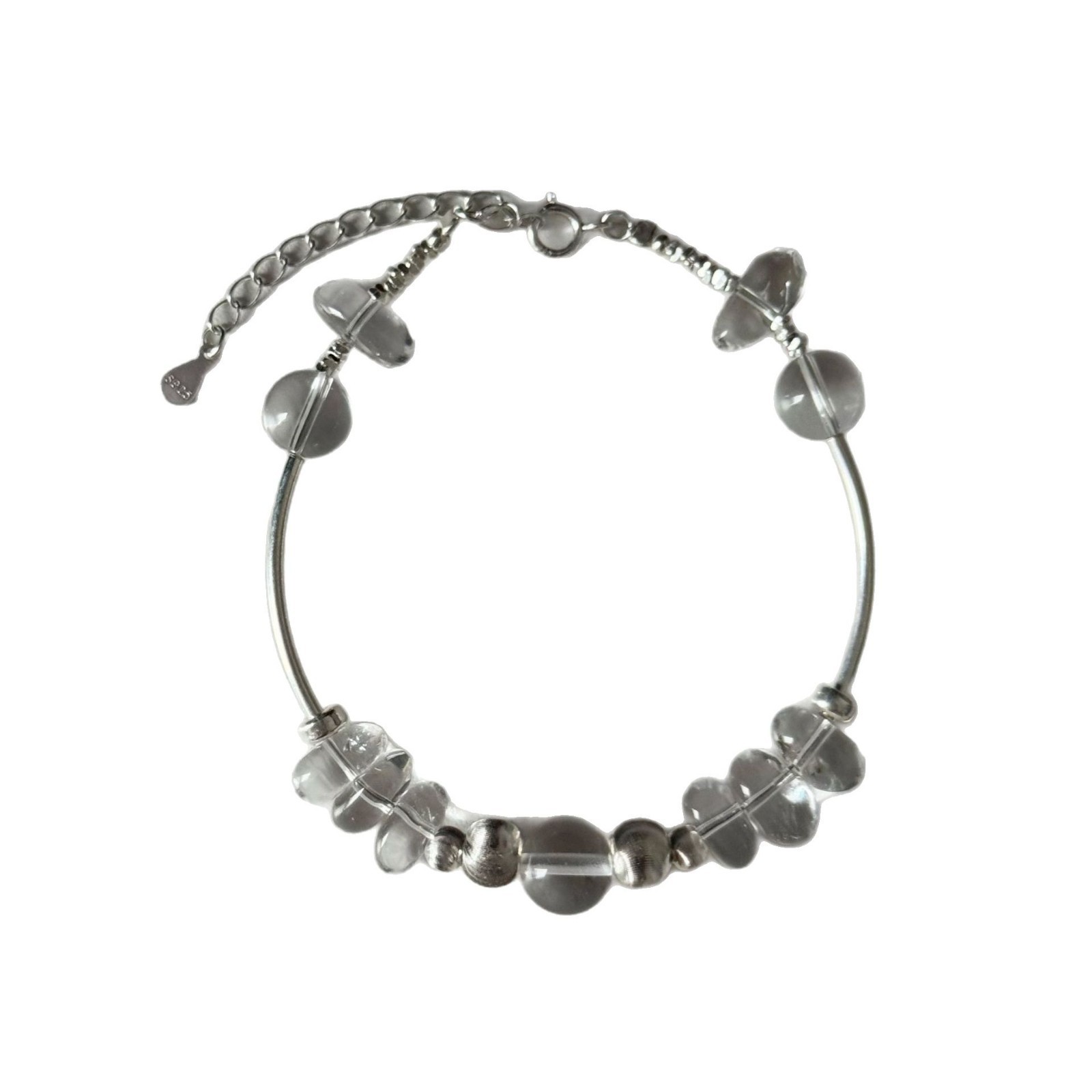 S925 Silver Irregular White Crystal Beaded Bracelet, Minimalist Design Bracelet