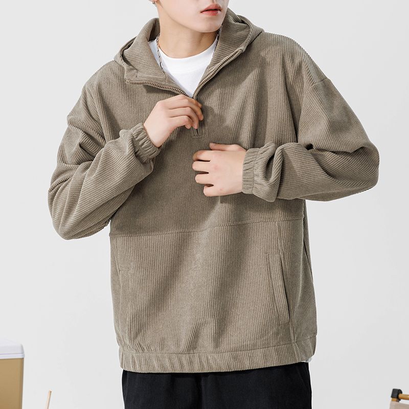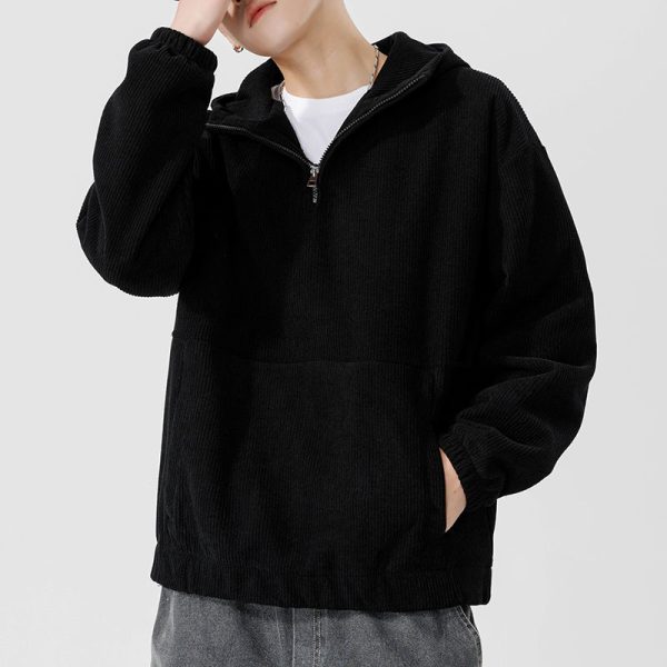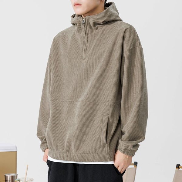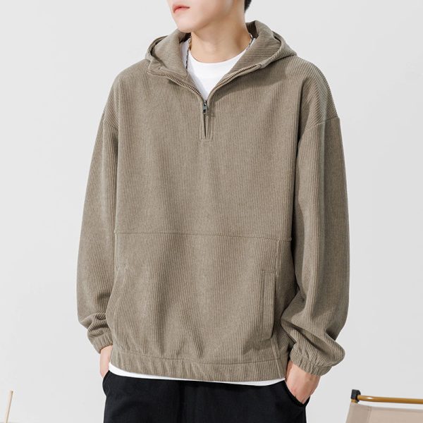 Solid Color Loose Versatile Heavyweight Trendy Men’s Pullover Half-Hooded Sweatshirt Casual Spring Zipper