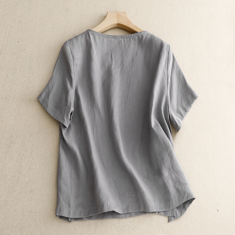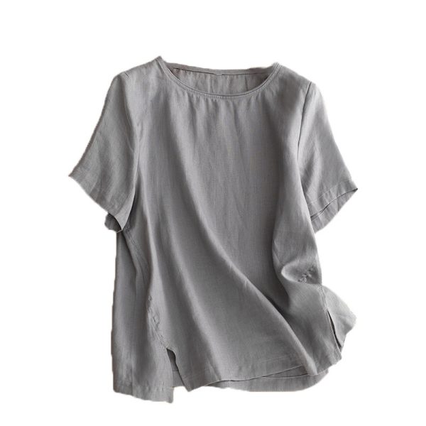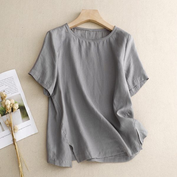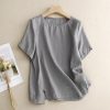 Solid Color Vintage Loose Casual Women’s Cotton Linen Top Short Sleeve T-Shirt