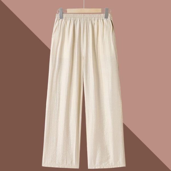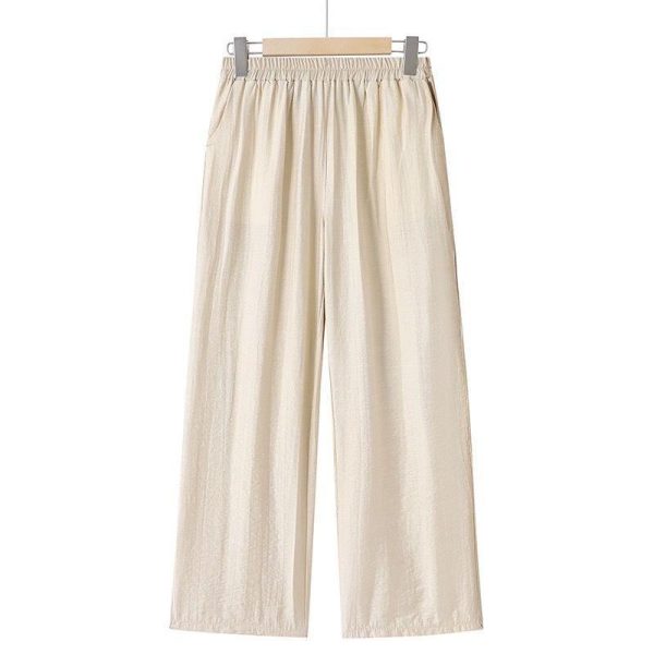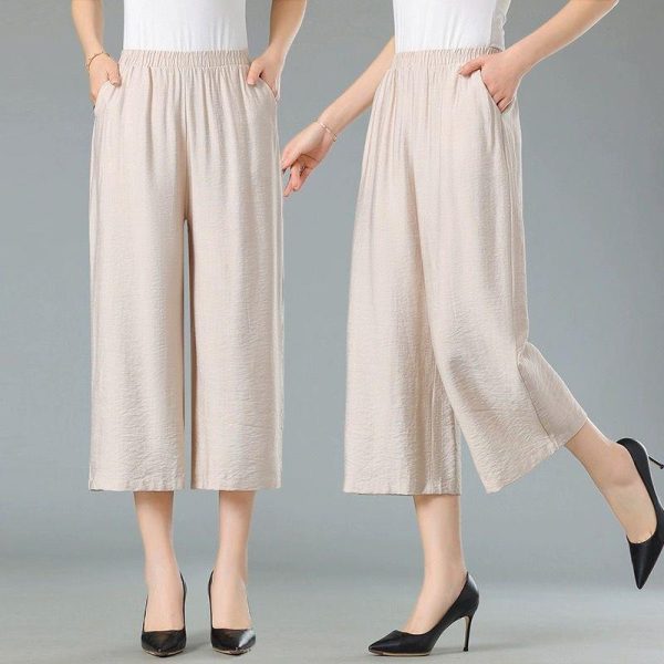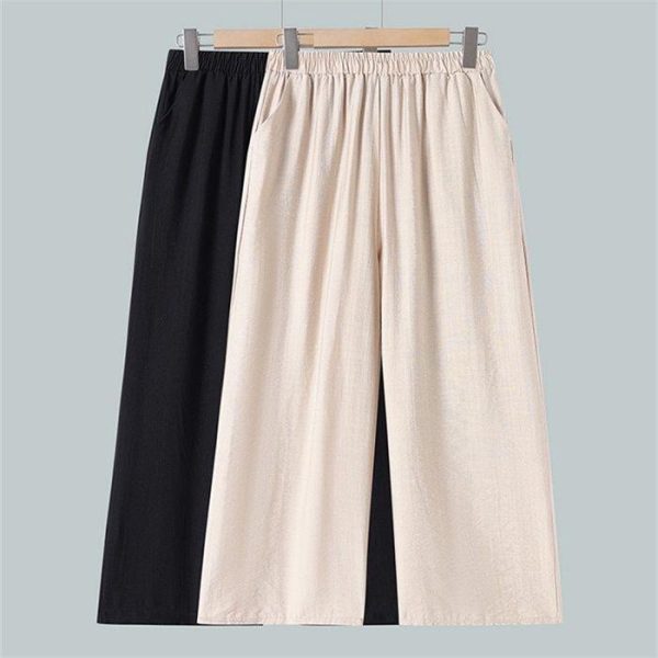 Women’s Cotton Linen Cropped Wide Leg Pants Casual Trousers