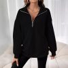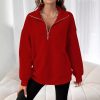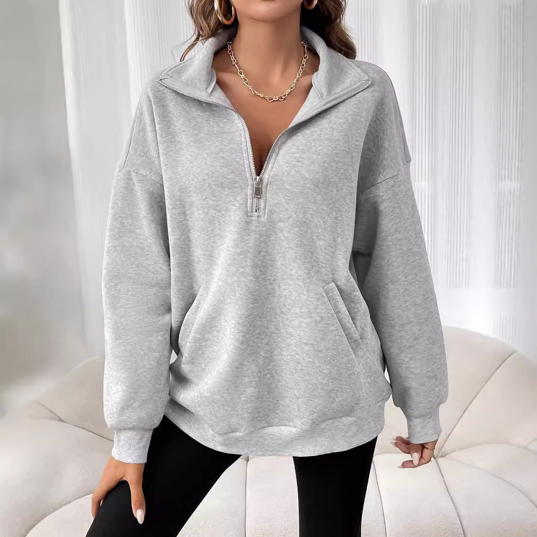 Women’s Fashion Zipper Lapel Solid Color Casual Sweatshirt Loose Pullover