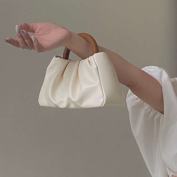 Wooden Handle Ruched Cloud Handbag Shoulder Crossbody Mini Bag